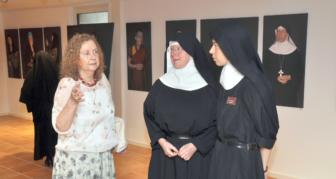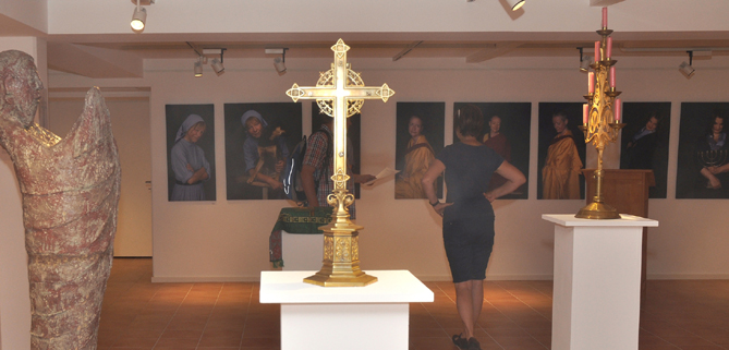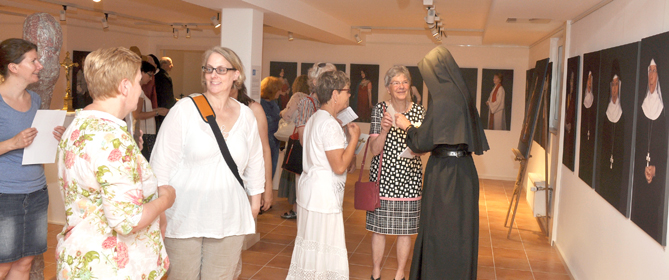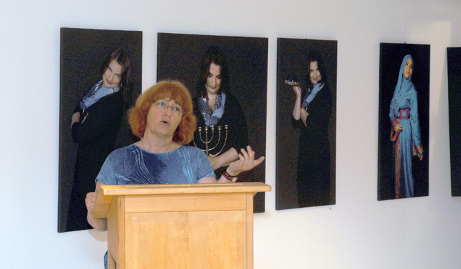Unter dem Titel „Frauen – Glaube – Ursprung. Ein fotografischer Dialog der Religionen“ stellt die Frankfurter Kunstfotografin Angela Jakob bis 4. Oktober 2015 in unserem Kunst-Keller 15 Foto-Triptycha von Frauen aus fünf Weltreligionen aus.